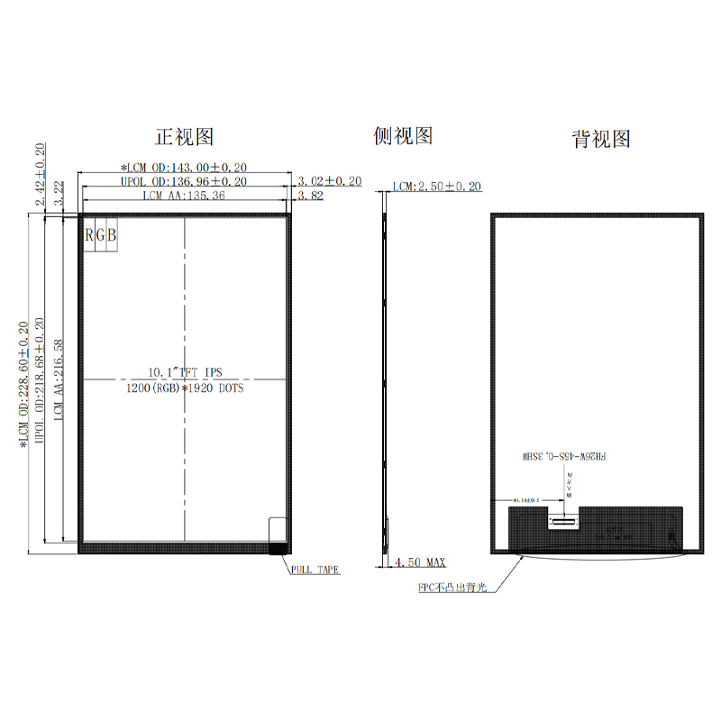 1. Product name: 10.1 inch 1200x1920 MIPI/I2C Interface In-cell Touch structure JD9366TS Driver IC Industrial LCD display module